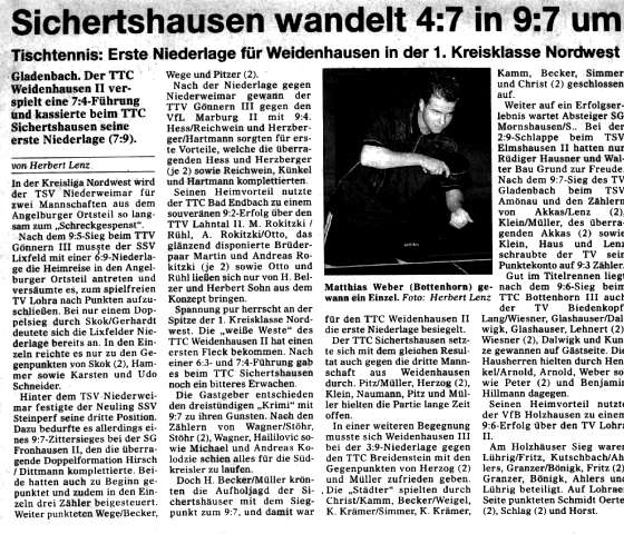 Weidenhäuser Mannschaften mit 9:7 bezwingen. Bemerkenswert ist, dass die Weidenhäuser
