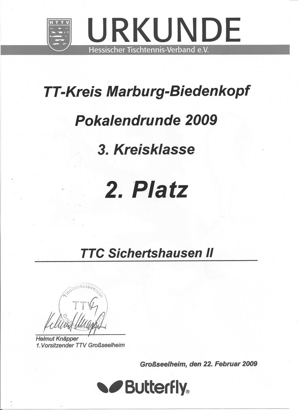 Bei der Kreispokalendrunde 2009 der 3. KK. belegte